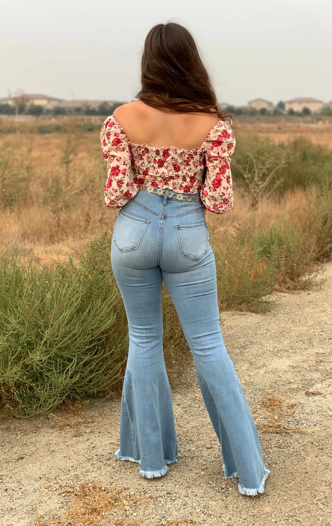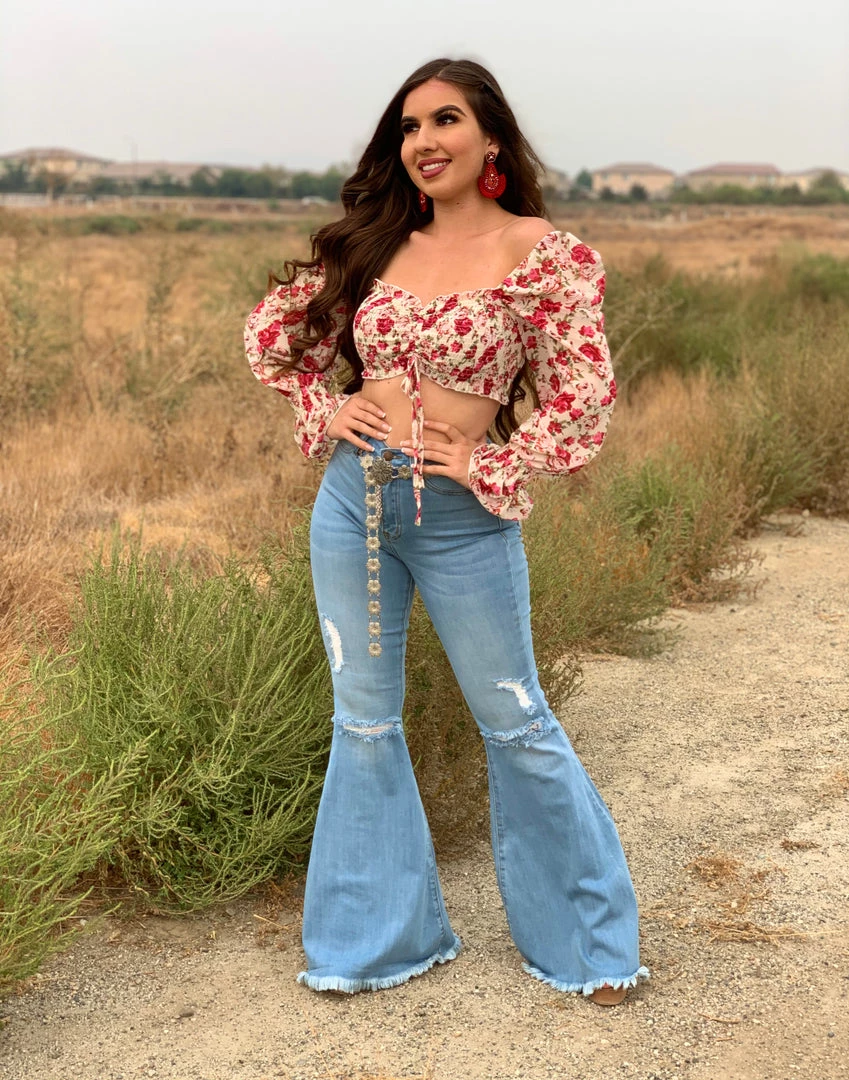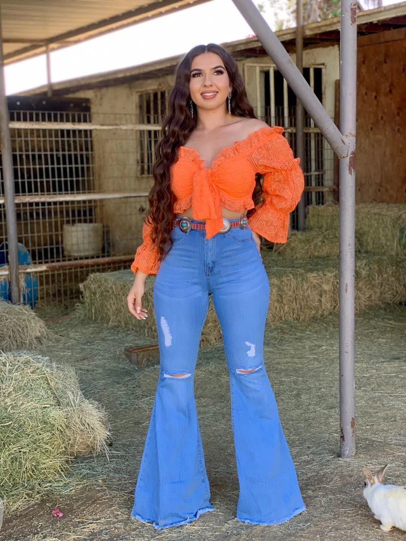 Valeria’S Boutique Baila Esta Cumbia High Rise Bell Bottom Jeans (Dark) Rodeo Collection