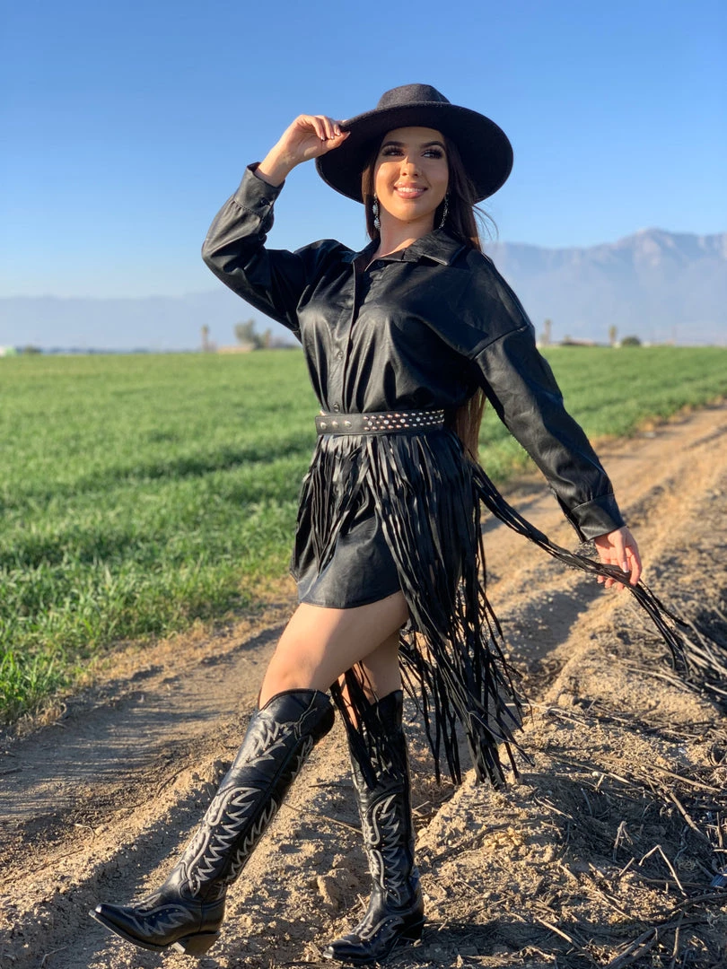 Valeria’S Boutique Cantina Leather Fringe Belt
