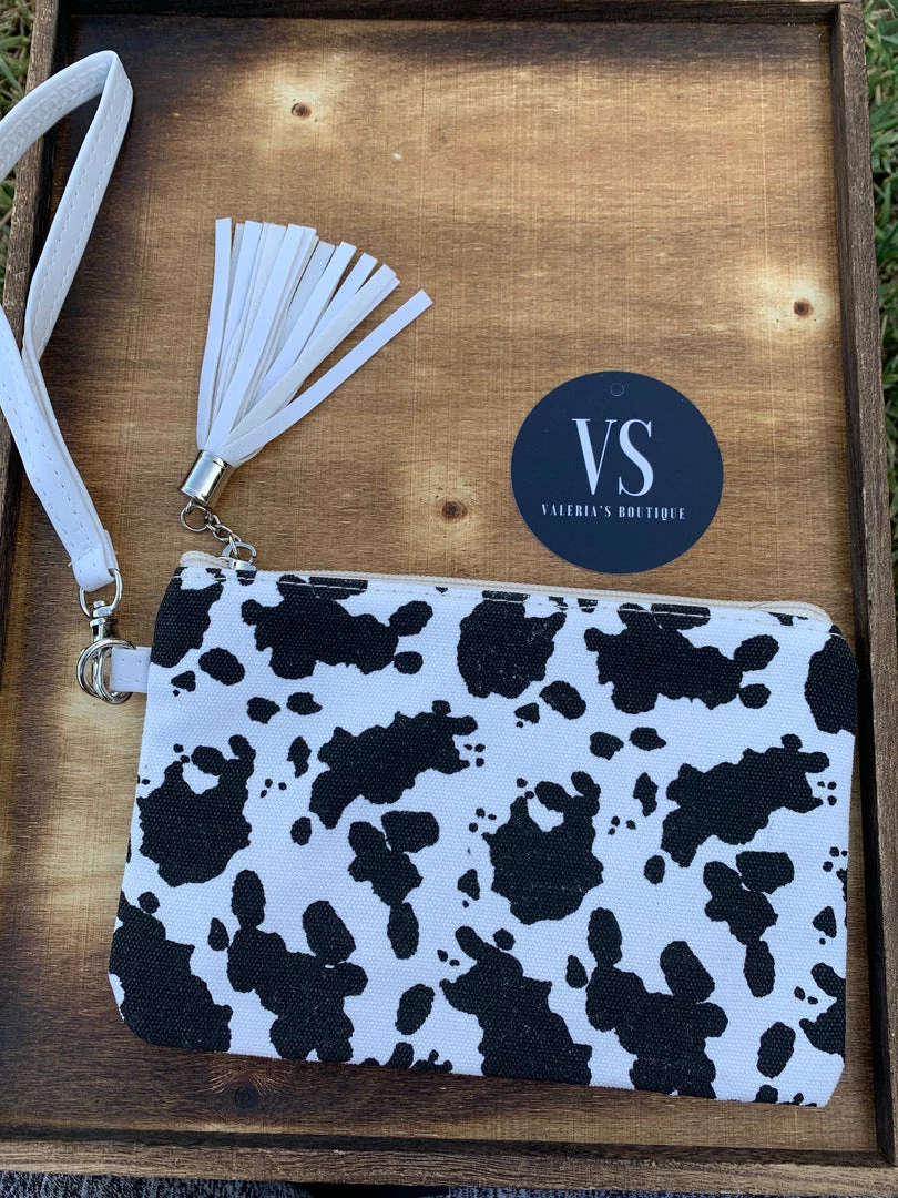Cowprint clutch with wristlet band
