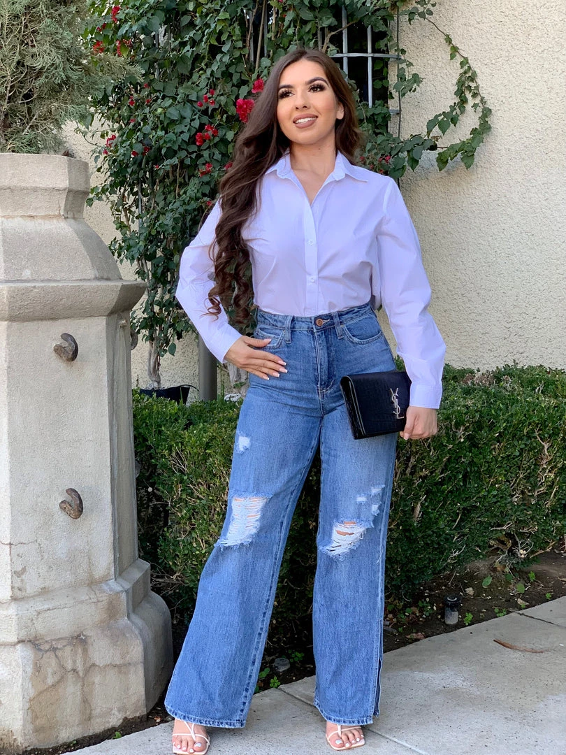 We recommend to size up if you have wide hips and/or want a baggier fit