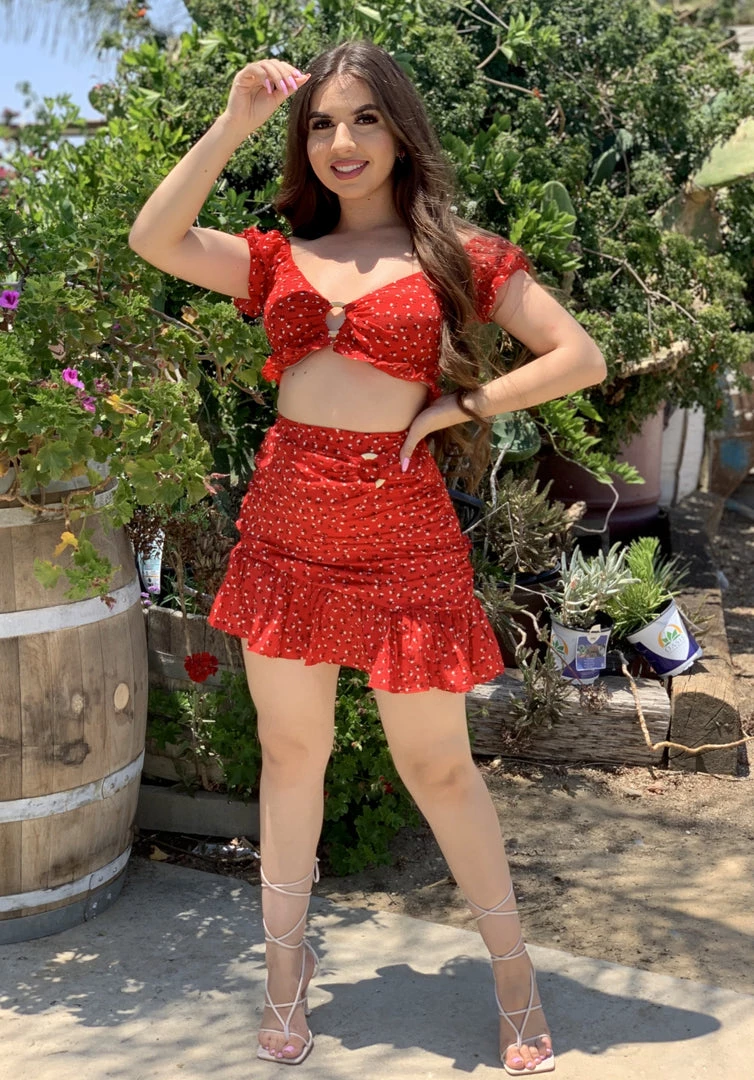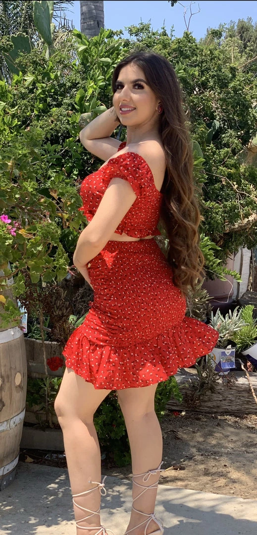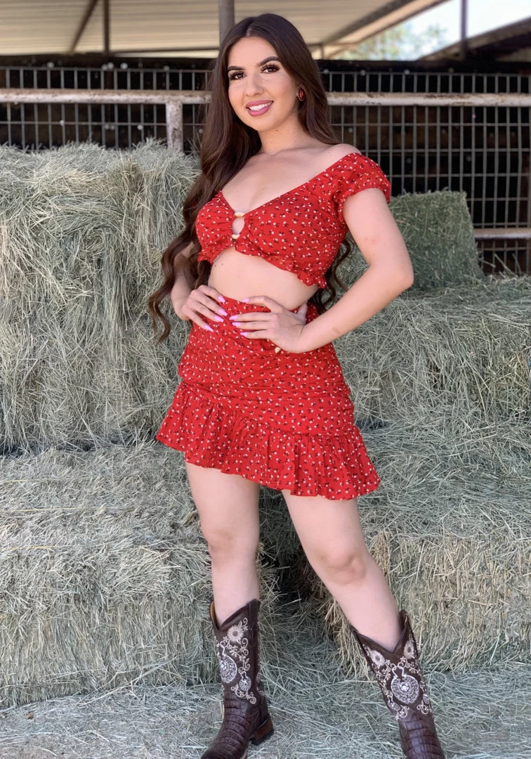 Two piece top and skirt set