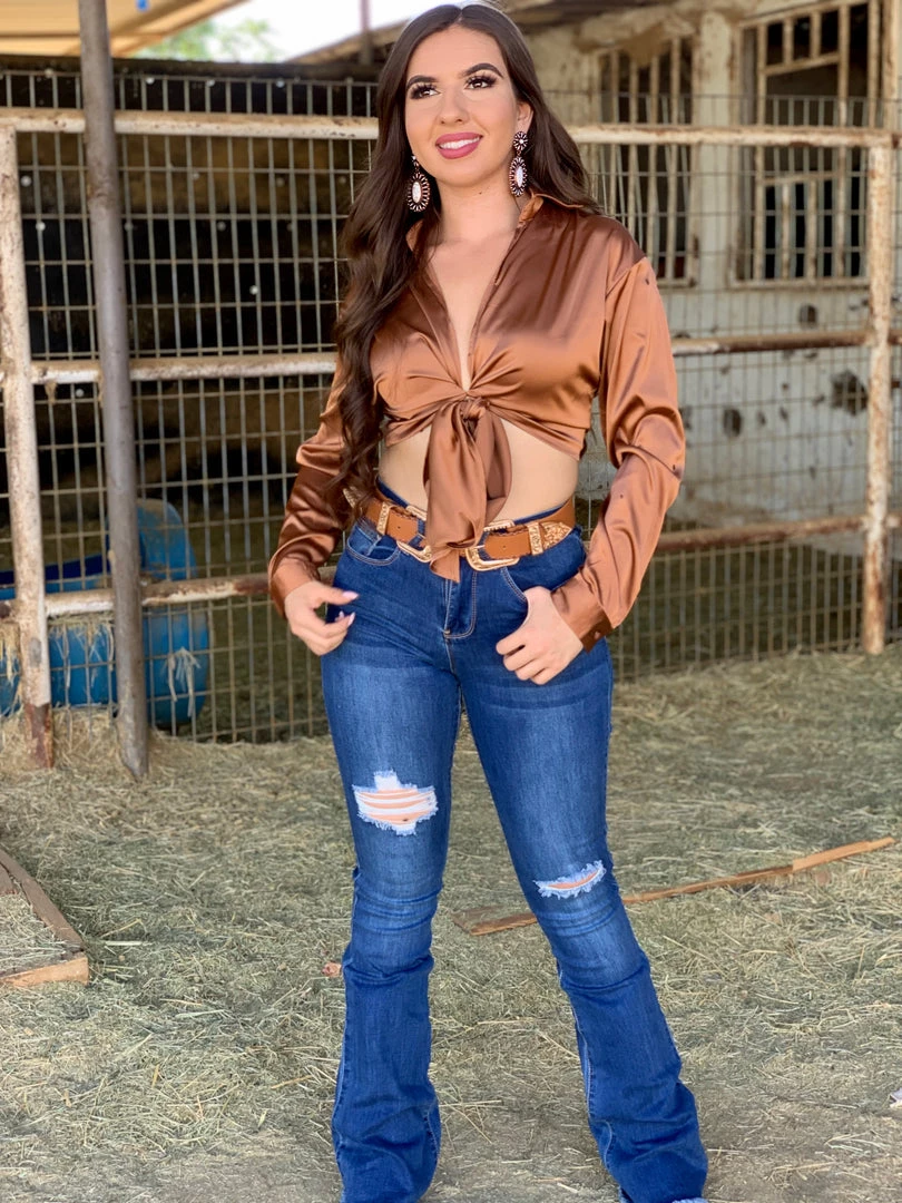 Satin tie top with collar