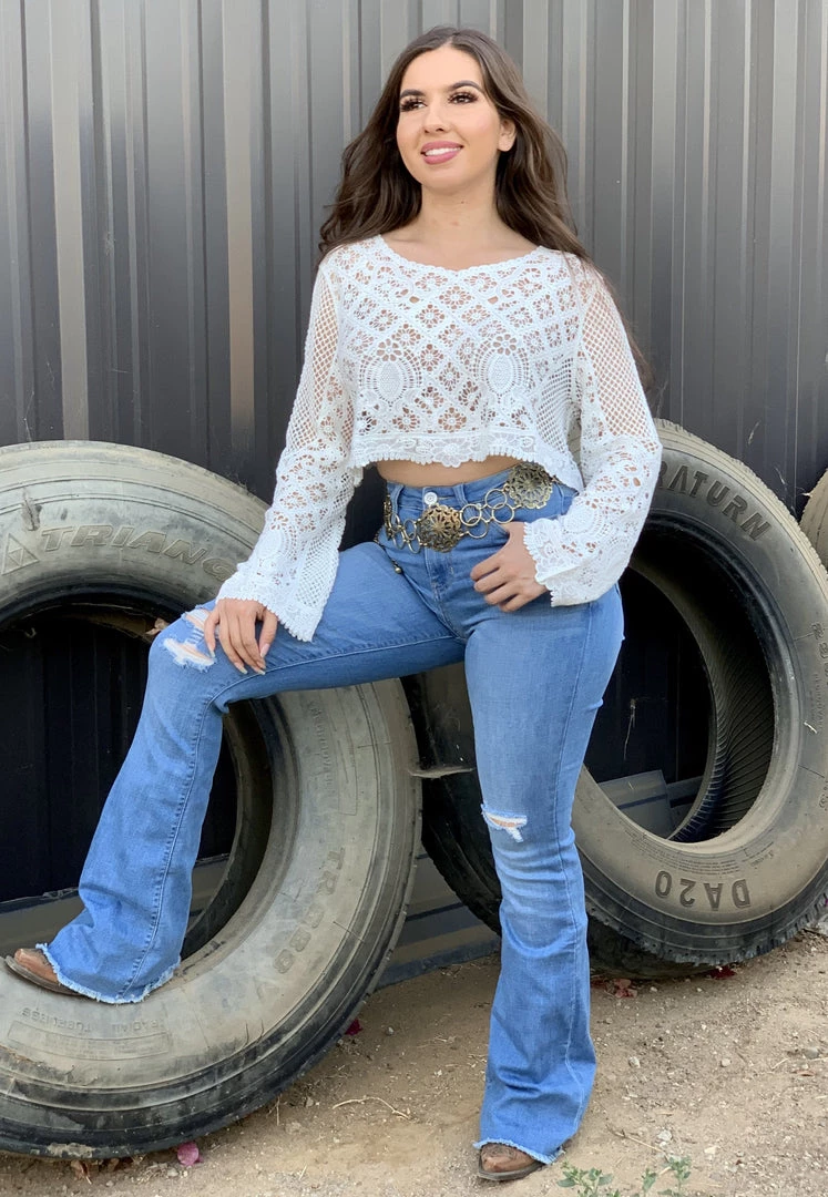 Transparent crochet crop top
