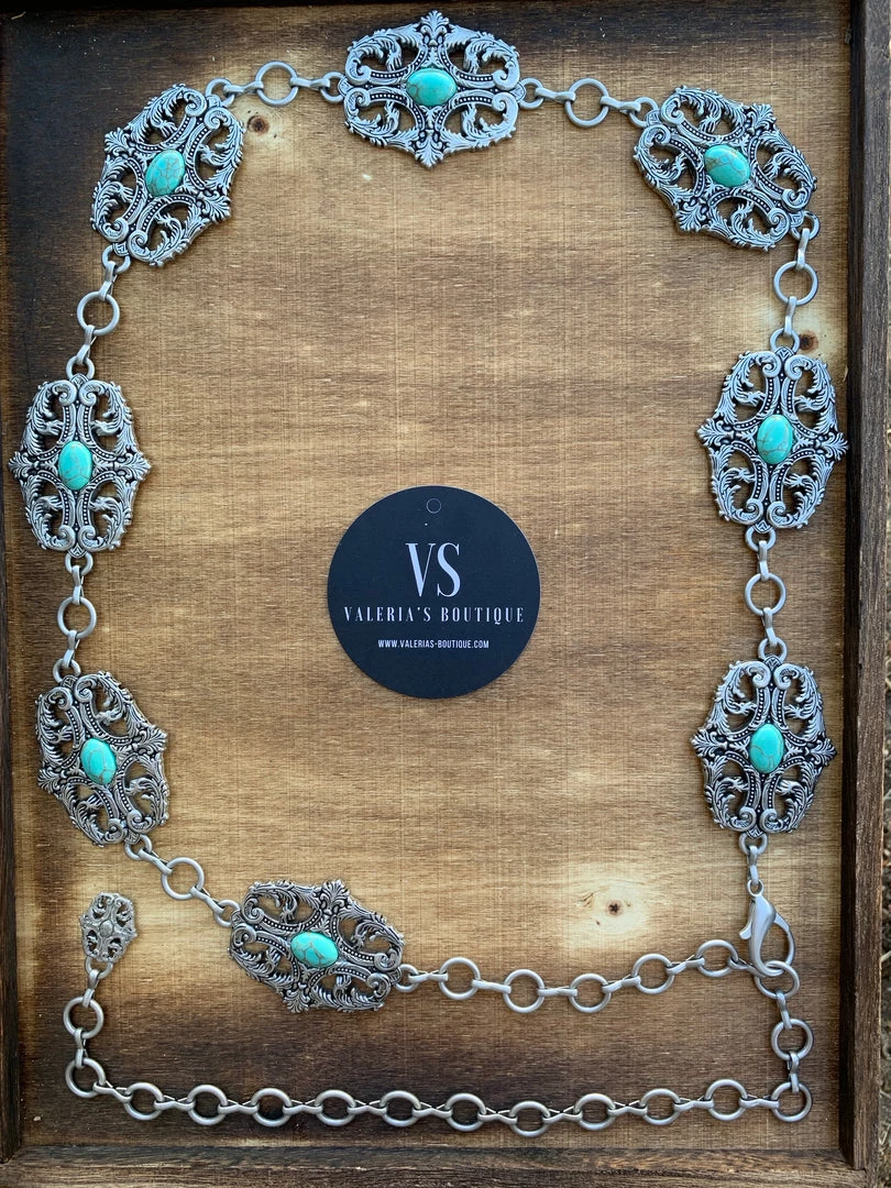 Valeria’S Boutique New Arrivals TC20 “Royal” Turquoise Chain Belt