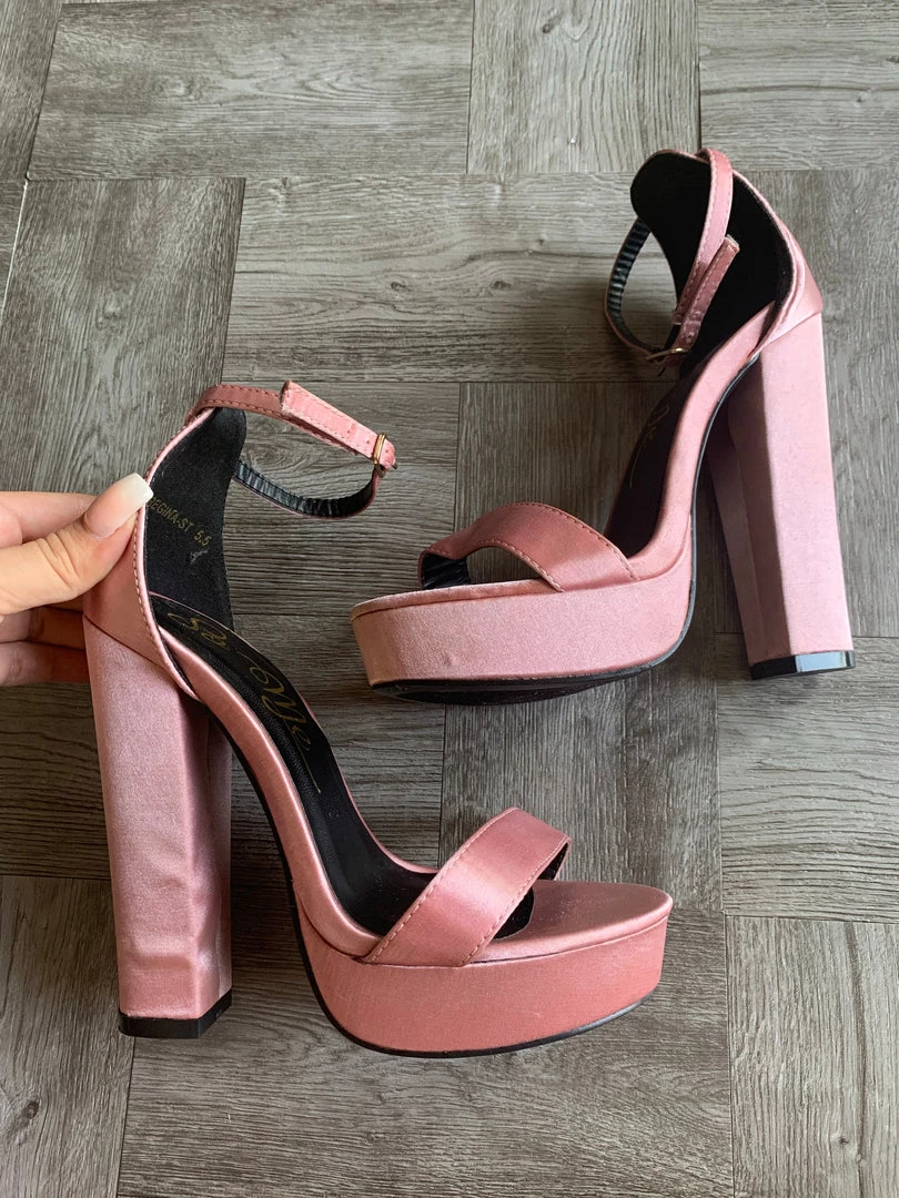 Valeria’S Boutique Pink Satin Chunky Heels – Size 5.5