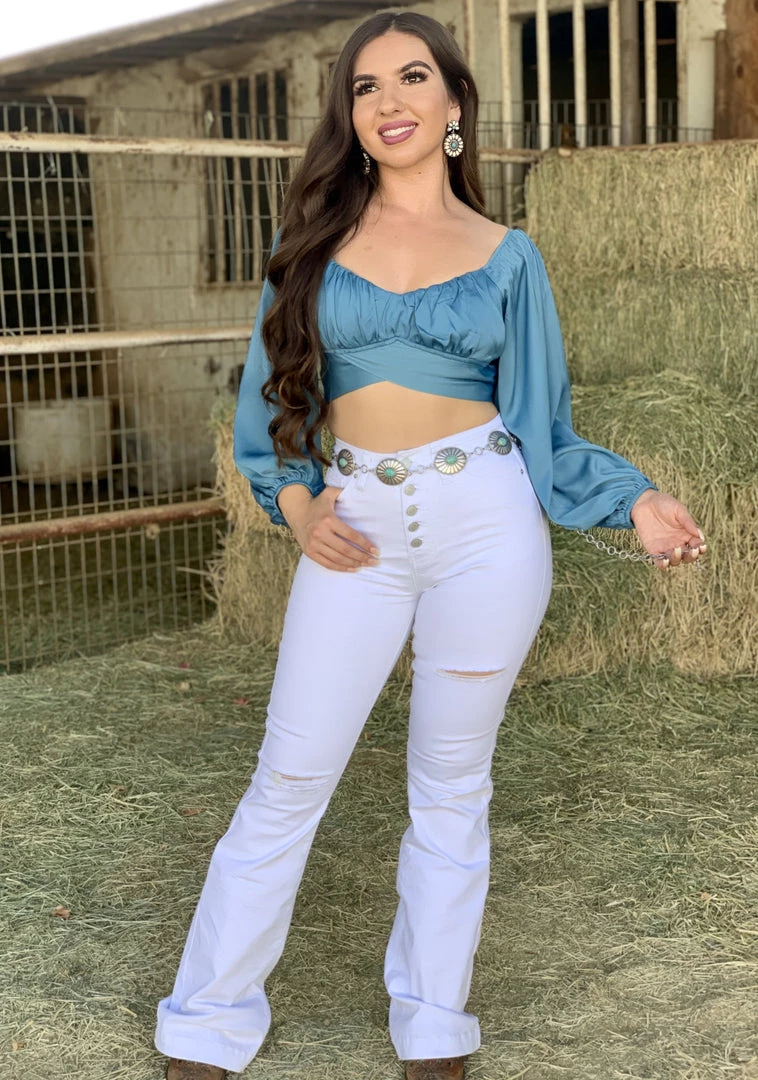 Valeria’S Boutique Baila Esta Cumbia High Rise Bell Bottom Jeans (Light) Rodeo Collection