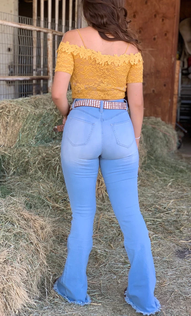Valeria’S Boutique Baila Esta Cumbia High Rise Bell Bottom Jeans (Dark) Rodeo Collection