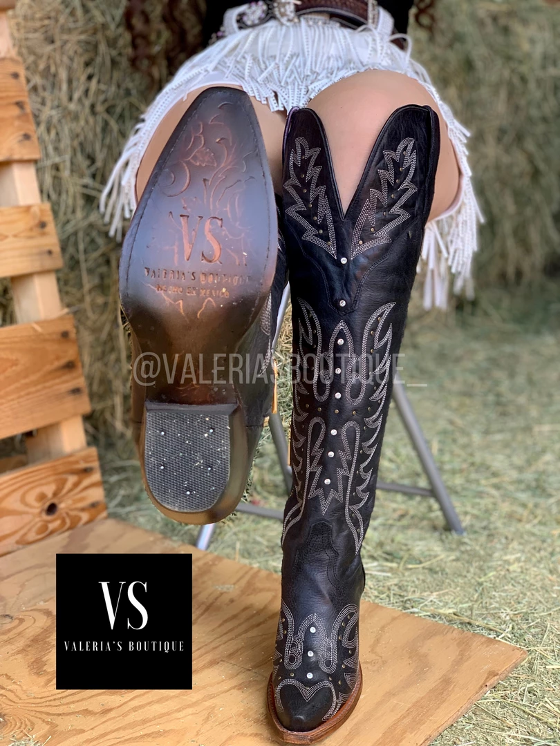 Newer version of our Valeria’S Boutique Tall Western Boots in a taller height, new zipper, and wider fit!